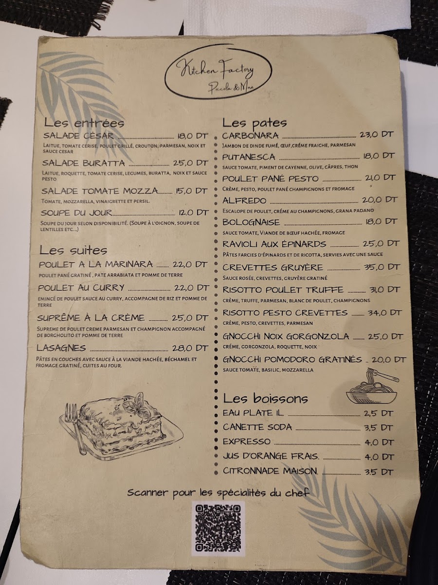 Welcome to Kitchen Factory piccola and more, a delightful culinary haven nestled in Rue du 25 juillet 1957, Marsa, Tunisia. Renowned for its mouthwatering pizzas and delectable pasta, this charming eatery promises an unforgettable dining experience. Patrons rave about the perfect dough and fresh ingredients that elevate each dish to new heights of flavor.
